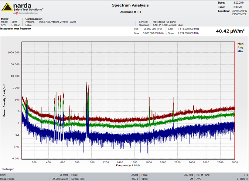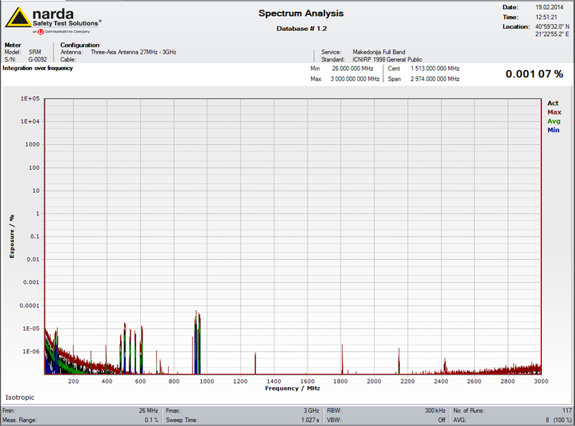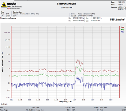 Заклучок: Од добиените резултати може да се заклучи дека максималната изложеност на нејонизирачки зрачења е помала од пропишаните гранични вредности.