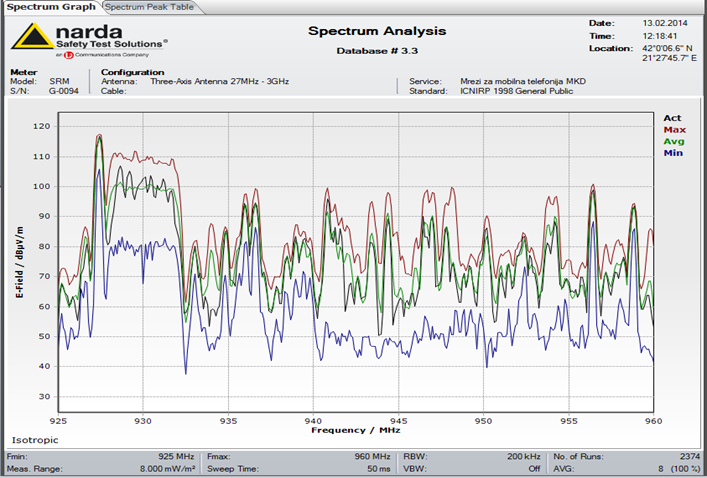 Заклучок: Од добиените резултати може да се заклучи дека максималнита изложеност на нејонизирачки зрачења е далеку помала од пропишаните гранични вредност.