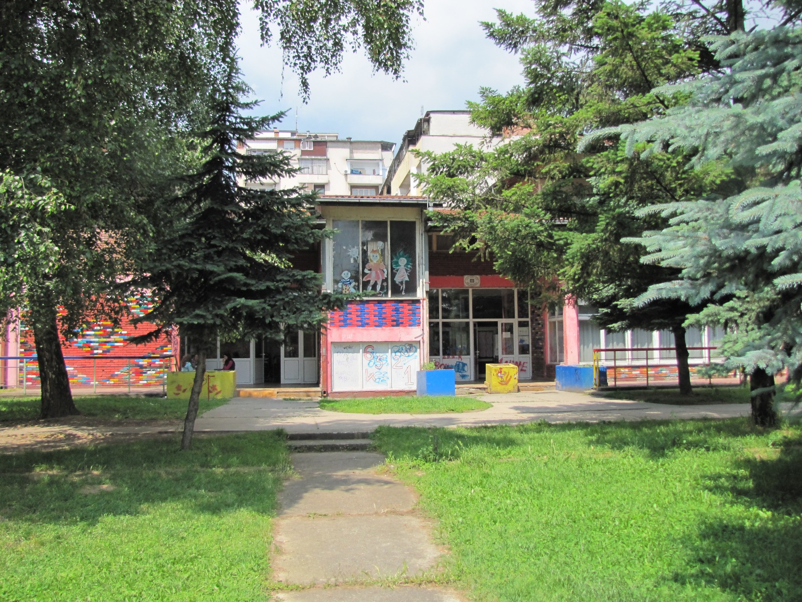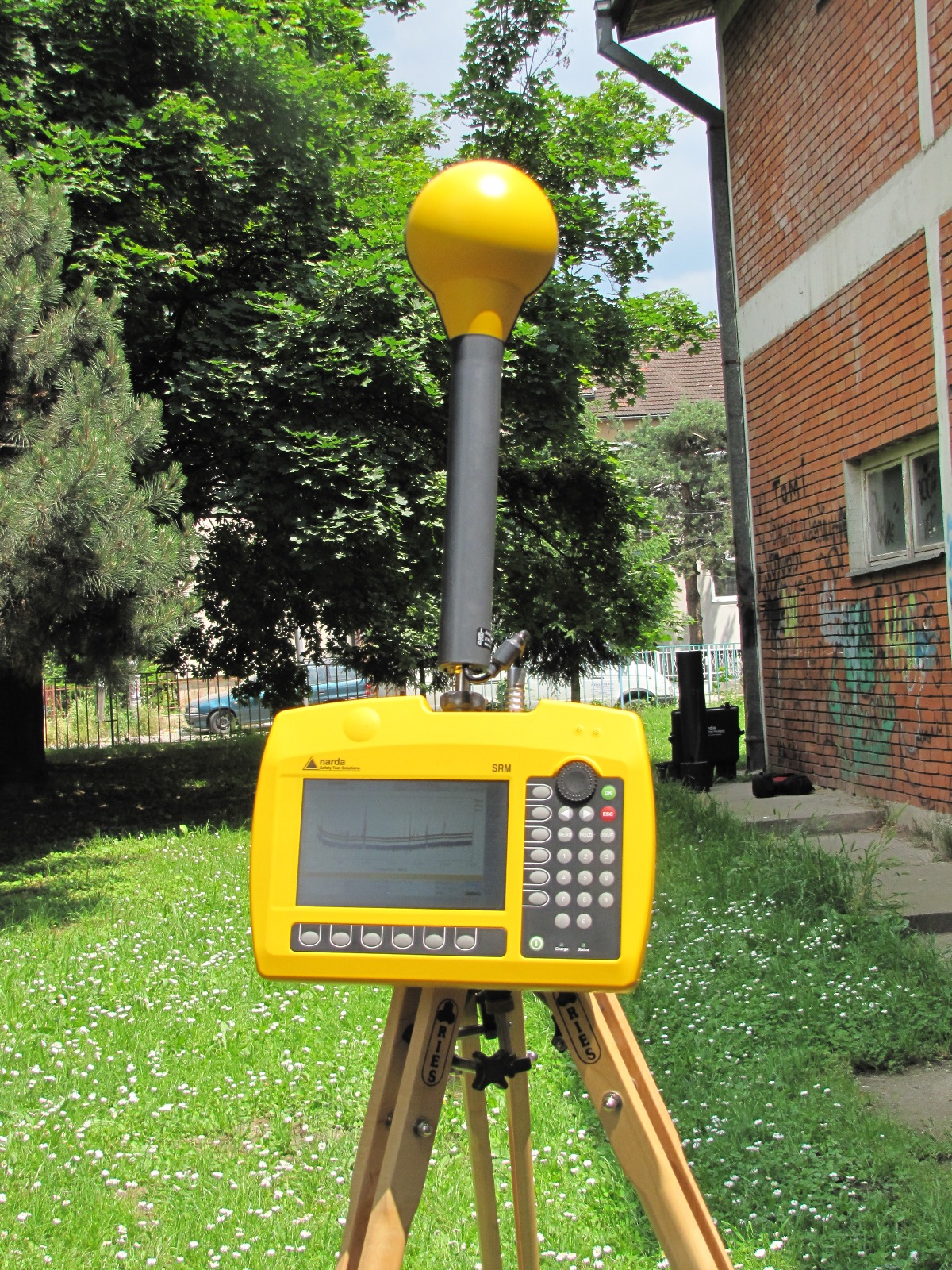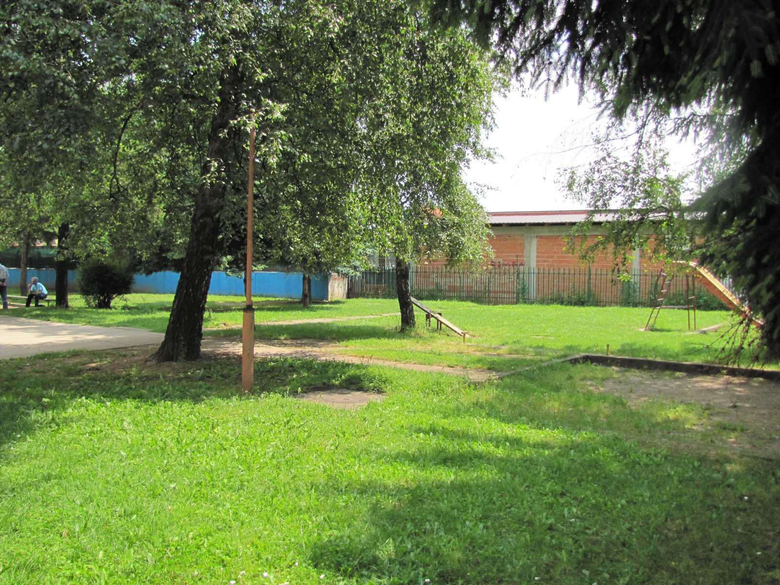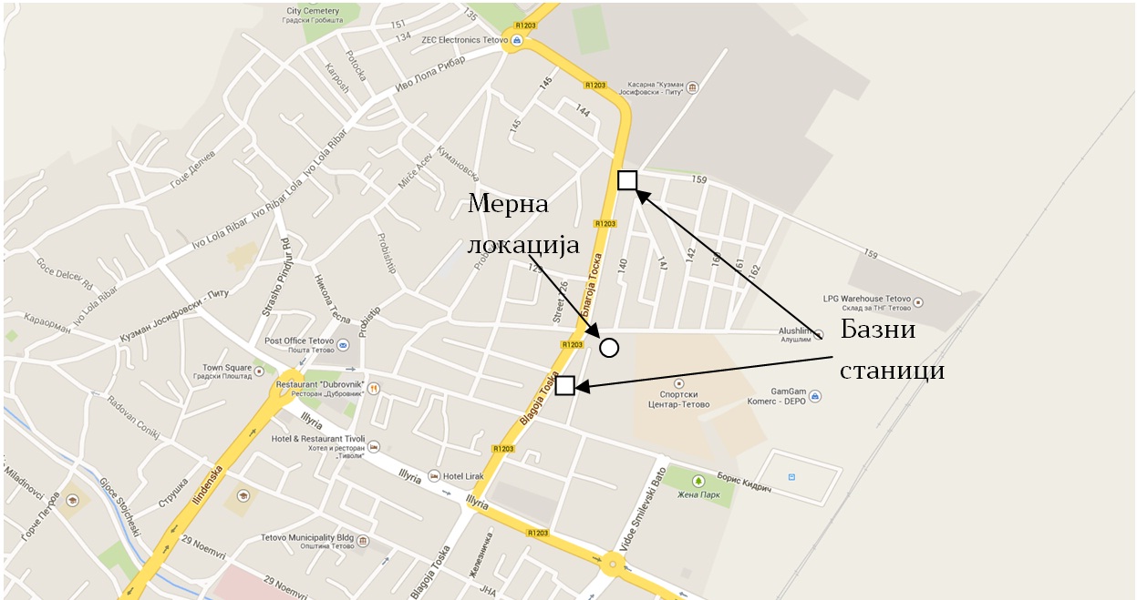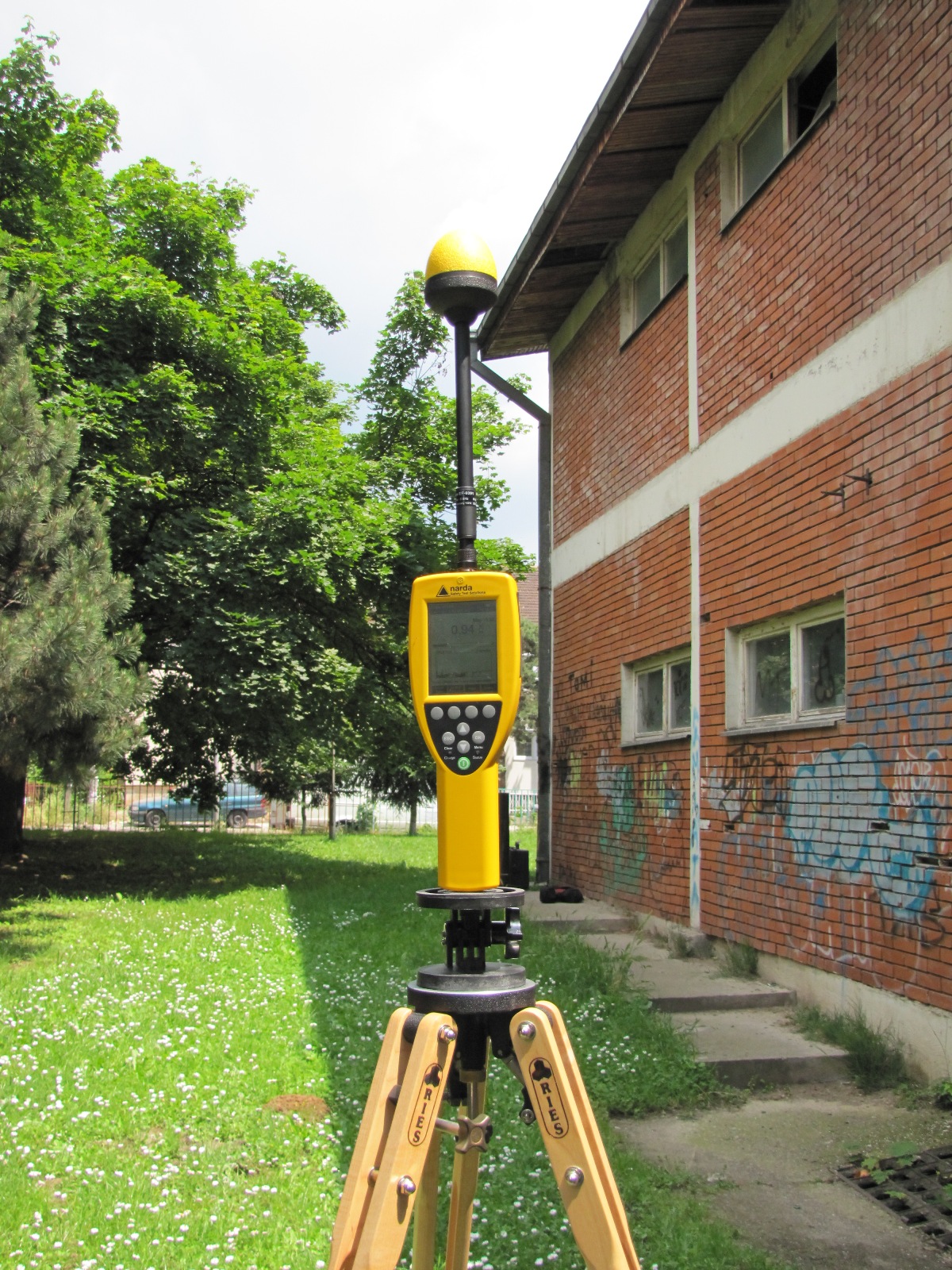 Заклучок: Нај голем придонес кон вкупното ниво на зрачење потекнува од блиската базна станица за мобилна телефонија. Влијанието на другите извори е значително помало. Во скоро цел двор на градинката измеренето поле е скоро двојно помало од погоре прикажаното бидејќи нема оптичка видливост до базната станица. Само во неколку точки во задниот дел на градинката беа измерени повисоки нивоа но сепак вредностите се повеќекратно помали од пропишаните гранични вредности.